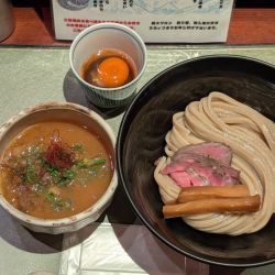 濃厚つけ麺やラーメンを提供。スープは国産鶏がら、もみじ、背脂と数種の香味野菜を16時間煮込んだスープと煮干し、カツオだしなどの魚介ダシをあわせたもの。麺は弾力・食感・香りにこだわった特注麺。